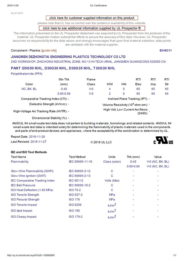 因分子結(jié)構(gòu)中具有尼龍66的結(jié)構(gòu)使得材料的流動(dòng)性及韌性得到加強(qiáng), PANT的韌性甚至可以與全脂肪族的聚酰胺相媲美。